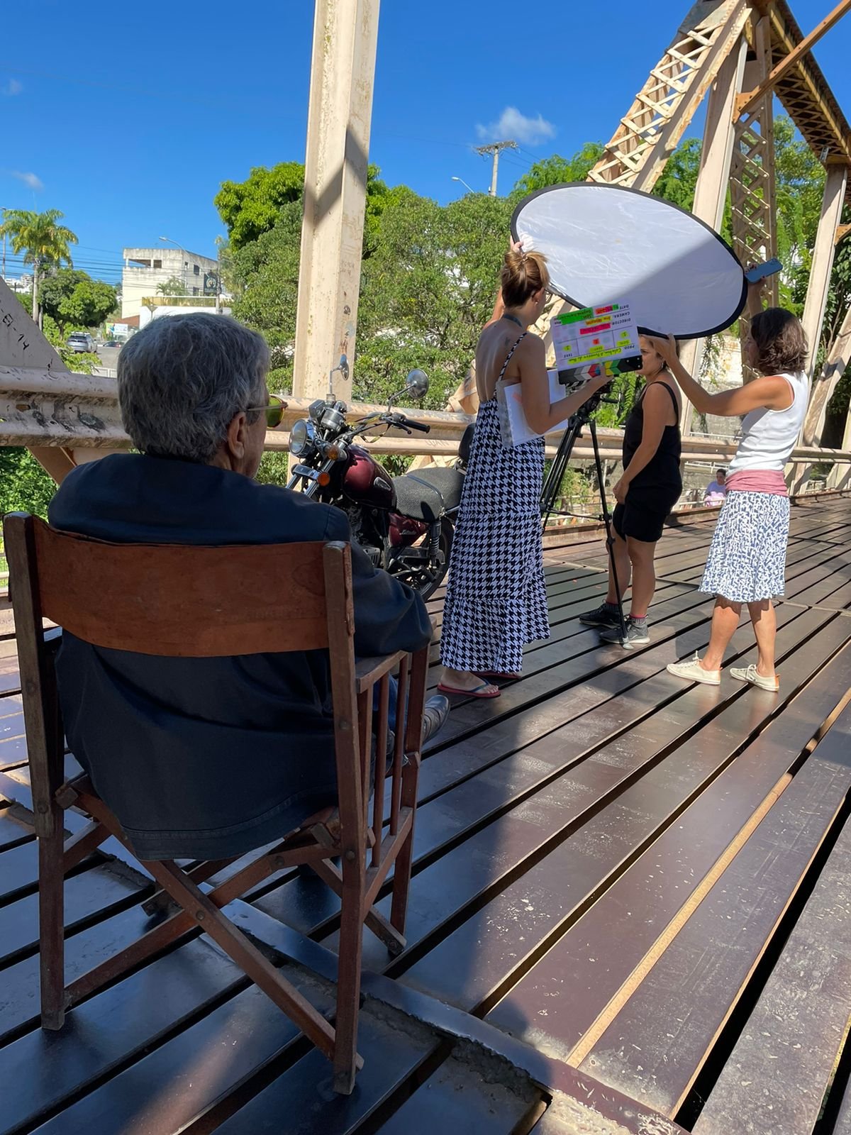 Os motociclistas percorreram alguns dos principais pontos da cidade como a Ponte Florentino Avidos, as Avenidas Getúlio Vargas e Beira Rio e, ao final, se reuniram para apreciar o famoso pôr do sol no horizonte. Um lugar marcante para um encontro de motociclistas com um misterioso caminhante carregando um violão nas costas. O artista é Moisés Souza, professor de violão e guitarra, perito na viola de 10 cordas, mandolin, banjo, contrabaixo e no cavaquinho, músico que perpassa o rock, o blues e o choro. Os detalhes da cena inusitada serão conferidos na telona durante a exibição do filme numa sessão gratuita ao ar livre prevista para esse semestre. A Guarda Municipal da Secretaria Municipal de Transporte, Trânsito e Segurança Pública (Semtran) acompanhou e sinalizou o trajeto das motos. E o elenco reuniu os motociclistas Pergentino de Vasconcelos Júnior, João Sérgio dos Santos, Breno Vasconcellos, Humberto Scarton e Gatas Carone.