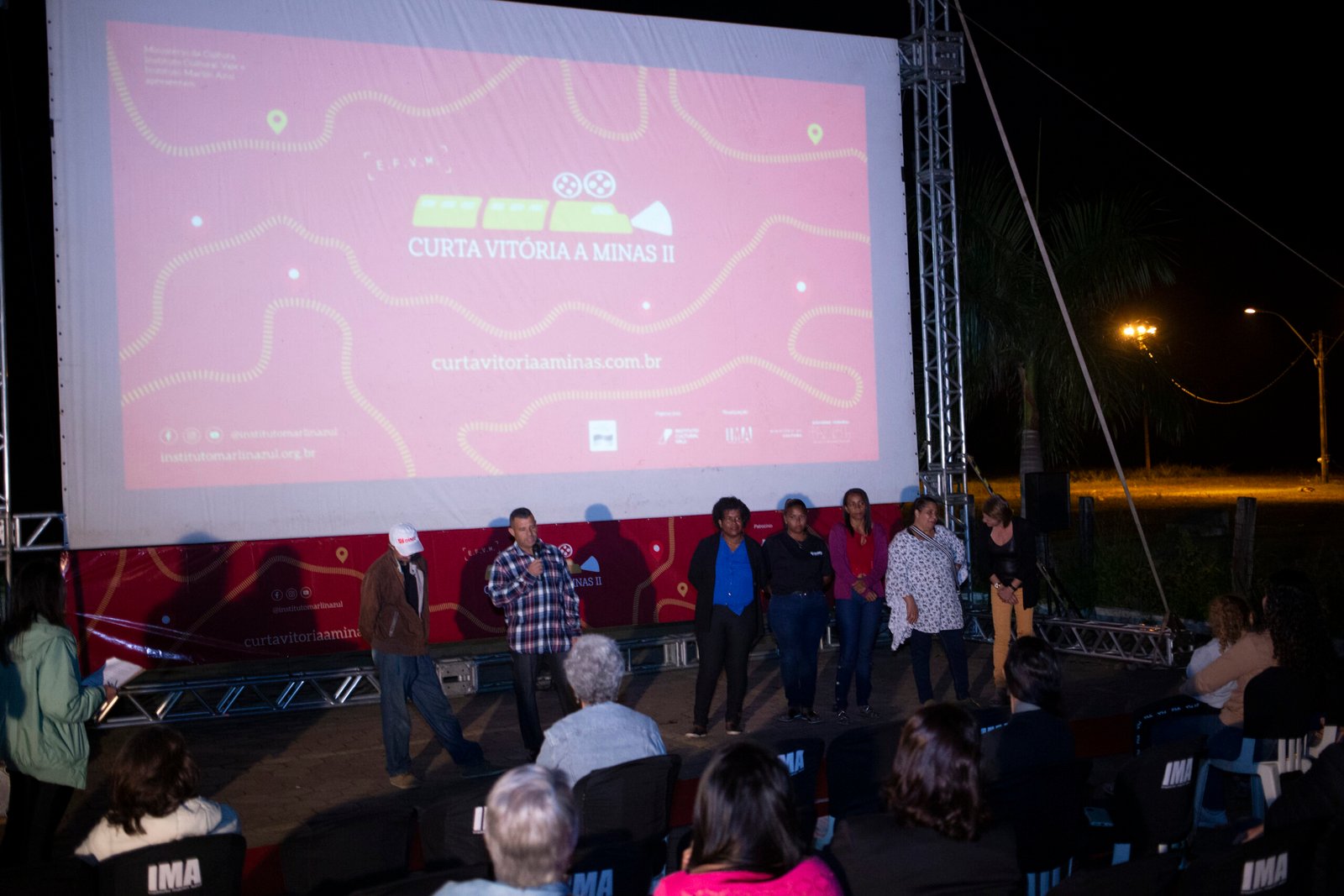 Uma lua exuberante se formou atrás da telona de cinema enfeitando o cenário da sessão de cinema ao ar livre. A Analista de Responsabilidade Social da Vale, Viviane Fontes, comandou a apresentação da sessão e convidou os personagens do documentário para contar um pouco sobre como foi a experiência de viver as emoções de um set de filmagem e, ao mesmo tempo, compartilhar suas lutas e desafios.